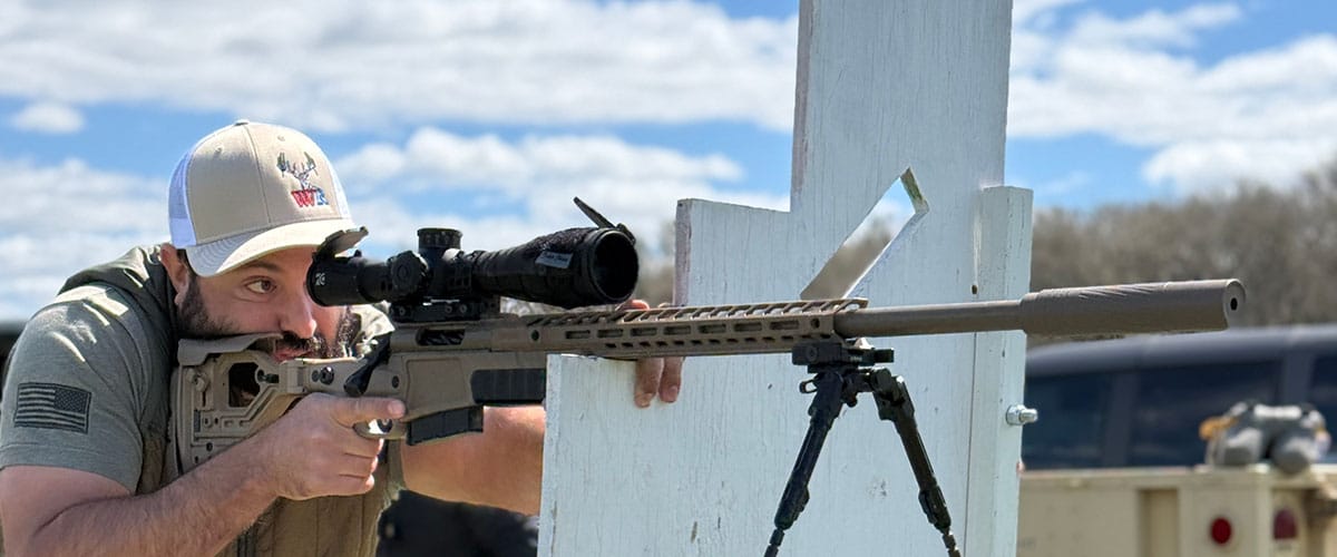 Learn the fundamentals of scoped rifle marksmanship from expert instructors in Austin. This foundational course covers the complete shooting process, introduction to ballistics, zeroing, holdovers, and multiple firing positions. Perfect for shooters new to precision rifle or ready to build a strong technical foundation.